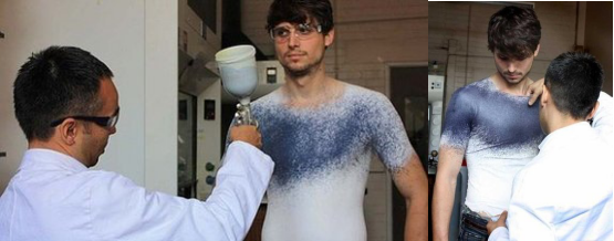 由西班牙设计师Manel Torres发明的一种特殊的材质,将棉纤维制作成液体,将它按照想法直接喷在人身上,在15分钟就可以快速风干成为一件衣服,而且成型之后和普通衣服没什么两样,可以正常清洗和缝补,当然如果你厌倦了它,也可以将它回炉重造哦。