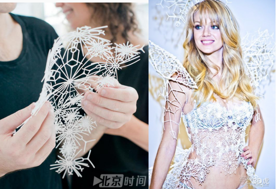3D打印技术大家估计都听说过,但成衣估计见过的不多,2013年维密秀上Lindsay Ellingson穿的那件就是3D打印作品,价值千万美金的水晶镶嵌在3D打印的成衣框架